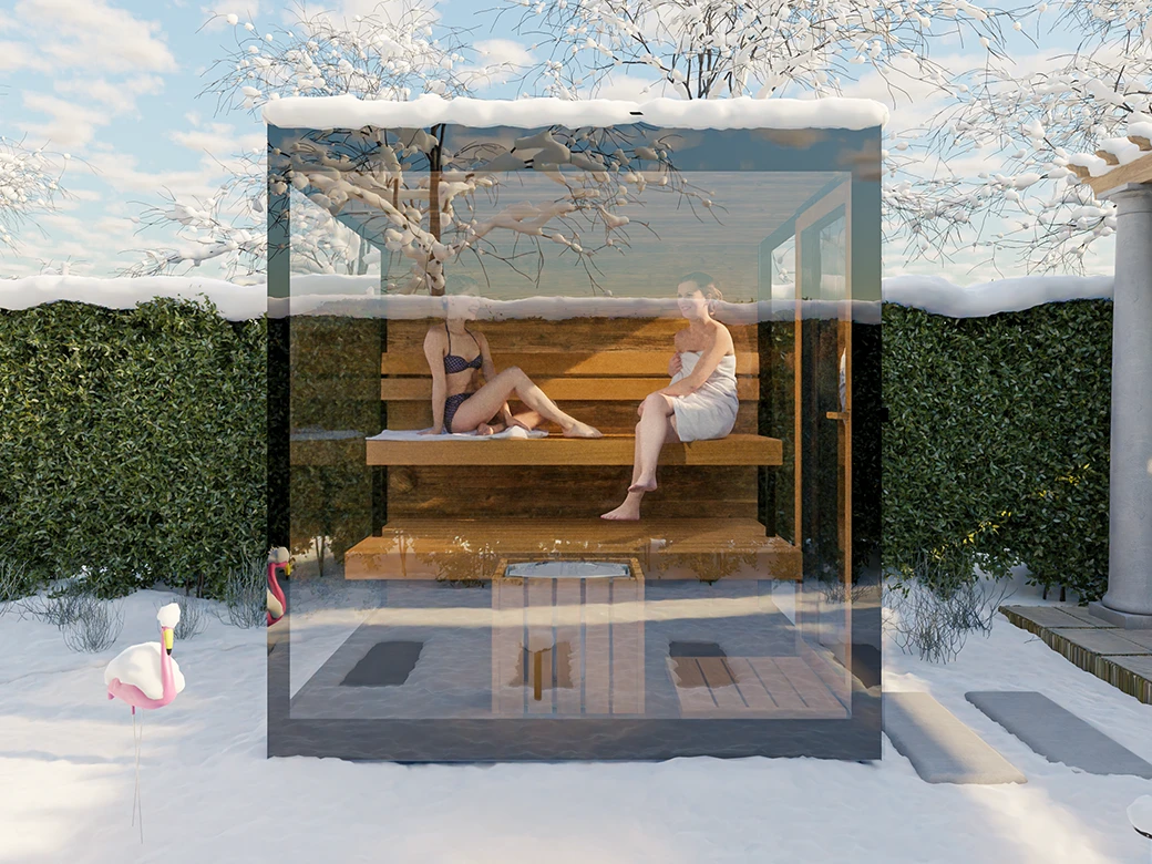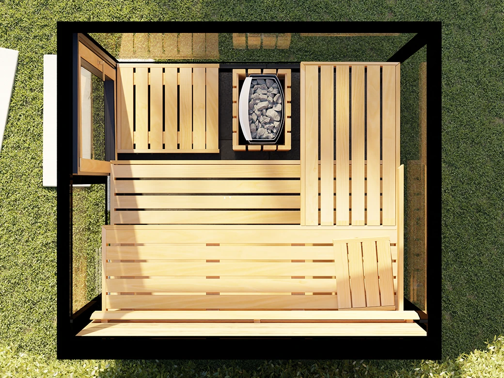 Deze sauna wordt volledig geassembleerd en met volledige elektrische installatie geleverd.