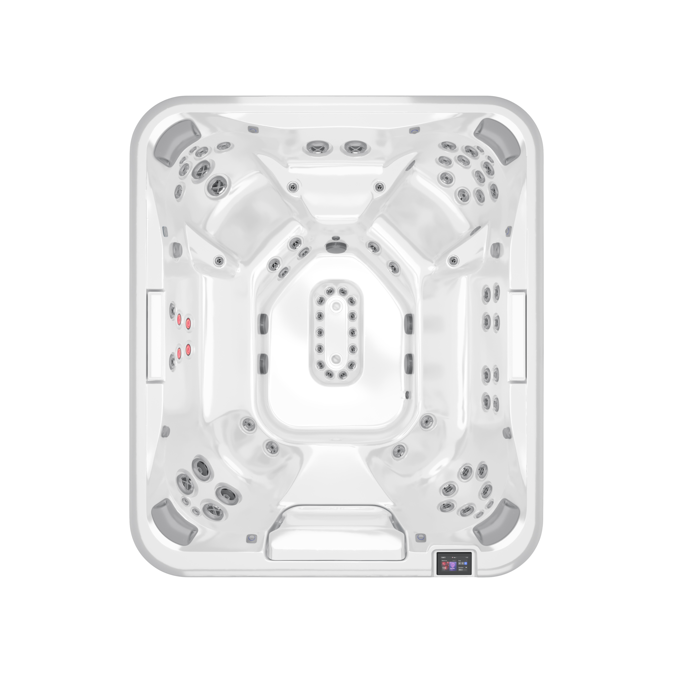 Deze spa met negen zitplaatsen, waaronder twee captain’s chairs en een bankje, biedt een ervaring op maat voor elk lichaam. Hamstringjets en infrarood- en roodlichttechnologie voor de hele rug zorgen voor intense ontspanning en herstel.